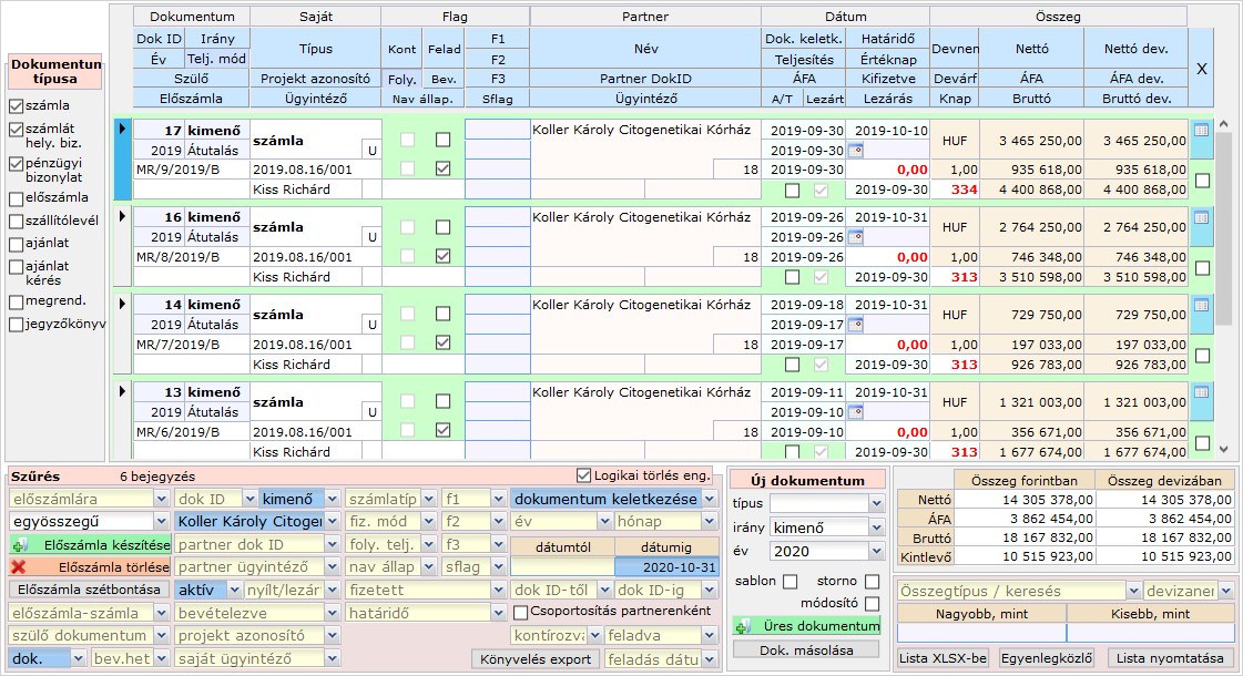 - bizonylattípusok: számla, számlát helyettesítő bizonylat, pénzügyi bizonylat